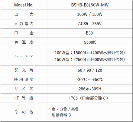 ・電源部別付型 150W (27000Lm / 22500Lm)